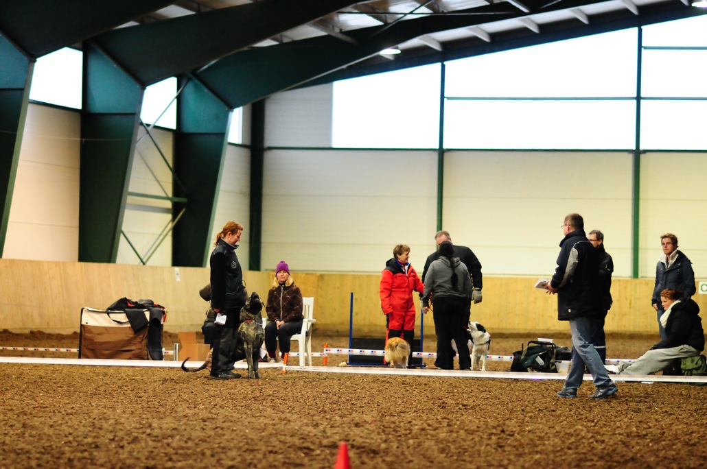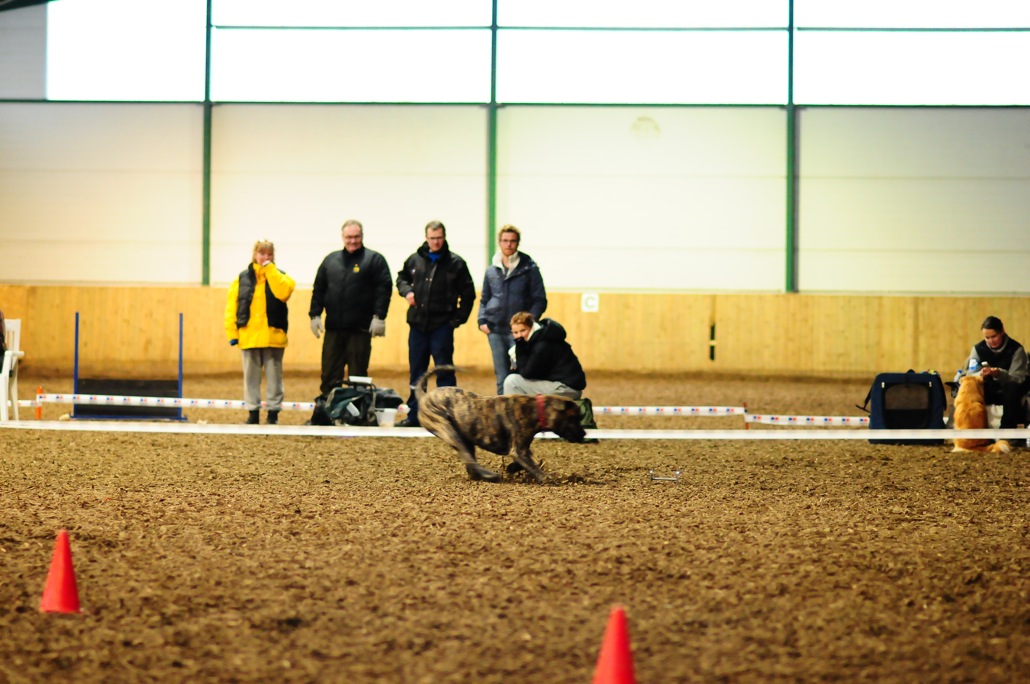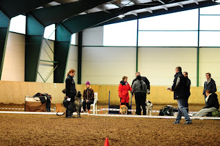 Neste prøvelse var Dogs4All. Her startet vi nest sist, og felles dekk og felles sitt gikk helt greit. Nurk var med meg som bare det da vi varmet, men når vi kom inn i ringen så synes han det var kjempetrist, ubekvemt og vanskelig å gå lydidhet. Note to self på den - trene på de forholdene man møter i konkurranse! Nå er kanskje forholdene på Dogs4All vanskelig å matche, med Nordisk mesterskap i Freestyle på ene siden av ringen, og Agility NM på andre... men noe som ligner må vi jo få til.
